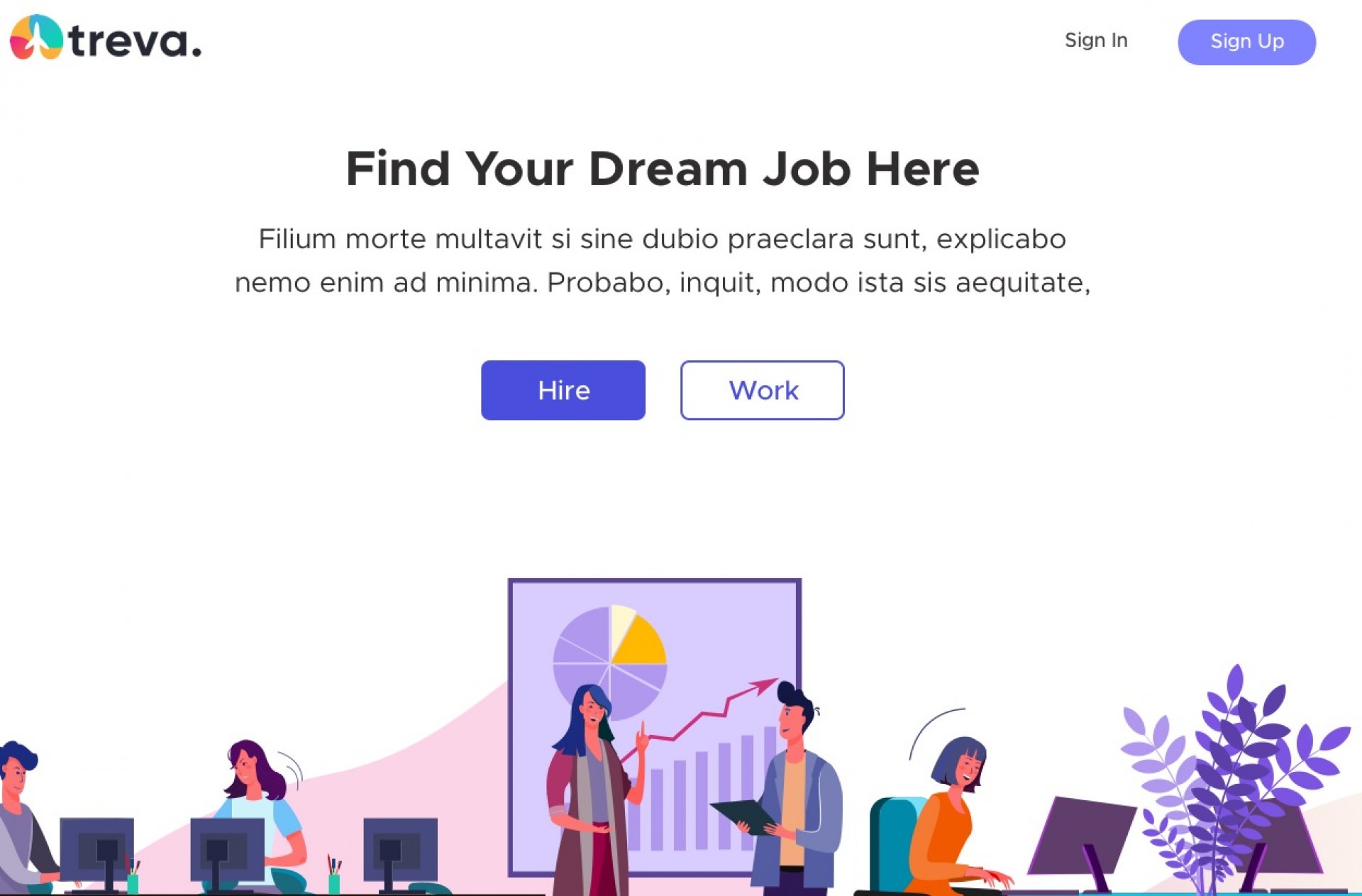 Elegant and clean landing page design for job hiring platform.